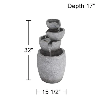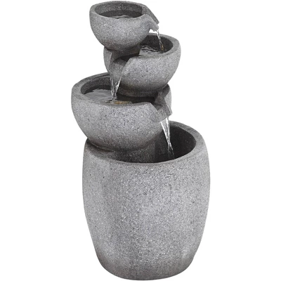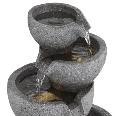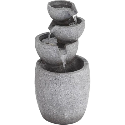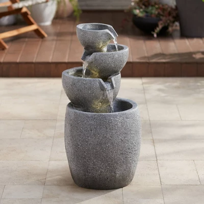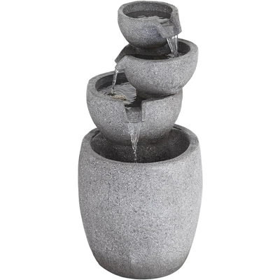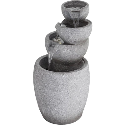 The calm sound of cascading water enhances the natural design of this LED four-tier floor fountain. A gray finish flatters the natural faux stone appearance, made to look like the fountain’s been carved from solid rock, with four charming bowls that initiate a continuous flow of water. This fountain by John Timberland® reinforces a nature-influenced feel and offers energy-efficient LED lighting for mood enhancement.