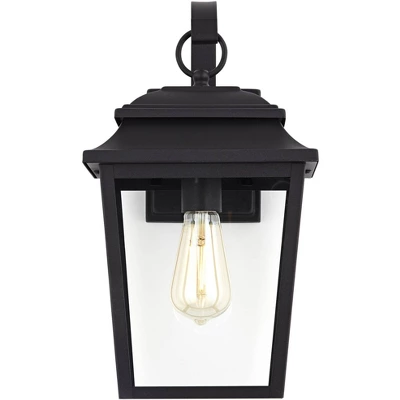 - Outdoor patio or porch wall light from the John Timberland™ brand. Top curved arm and ring detailing inspired by classic, traditional wall lanterns and outdoor lights.