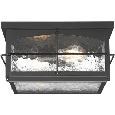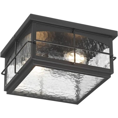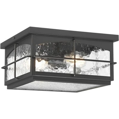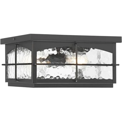 Create the perfect porch or patio to enjoy the outdoors with the Braylon outdoor ceiling light from the John Timberland® brand. Classy black finish coats the metal construction, accented by clear hammered glass providing visual texture for the illumination from the two bulbs housed within. Metal crossbars create imagery like windows, lending this design a warm, homely feel. Wet location for outdoor use.