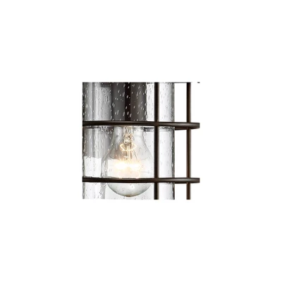 - Oil-rubbed bronze finish over steel construction. Seeded glass. Wet location rated for outdoor use.