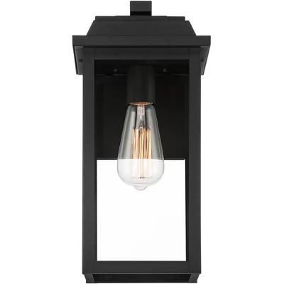 Update your home with this transitional outdoor wall light from the Eastcrest collection by John Timberland. Featuring clean, straight lines and an unassuming rectangular silhouette, it fits into any style or setting. The frame is constructed from steel and painted over in a textured black finish, with clear glass panels supporting throughout. Perfect for a porch, patio, or garage.