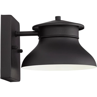 Inspired by modern industrial and barn light designs, these outdoor wall lights come in durable steel frames, painted black for a classic look. They feature wide shades that direct light downward, making them ideal for walkways and porch areas. The built-in LED light sources offer energy-saving lighting.
