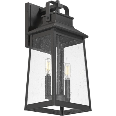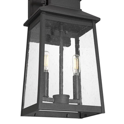 Celebrate the outdoor life with the Jubliee collection of outdoor lighting options from the John Timberland® brand. This modern minimalist style outdoor wall light comes in a stylish black finish paired with clear seedy glass. Two bulbs provide welcome illumination. The Jubliee outdoor wall light is wet location rated for outdoor use.