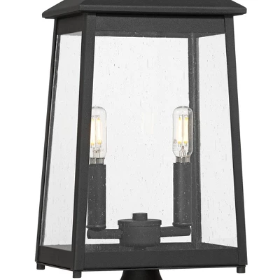 Celebrate the outdoor life with the Jubliee collection of outdoor lighting options from the John Timberland® brand. This modern minimalist style outdoor post light comes in a stylish black finish paired with clear seedy glass. Two bulbs provide welcome illumination. The Jubliee outdoor post light is wet location rated for outdoor use.
