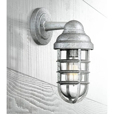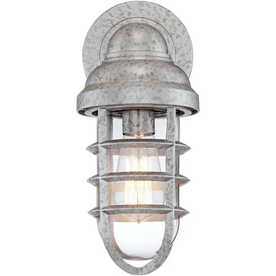 John Timberland Marlowe Industrial Outdoor Wall Light Fixture Galvanized Cage 13 1/4″ Clear Glass For Post Exterior Barn Deck House Porch Yard Patio