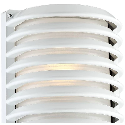 Contemporary outdoor lighting is one of the best ways to add curb appeal to your home. This banded grid wall mount outdoor light fixture from the John Timberland® collection features a cutting-edge design. It features sturdy die-cast metal construction and comes in a clean and sleek white finish. A striking addition to your outdoor spaces.