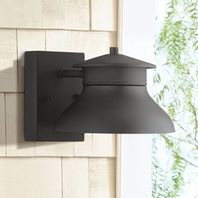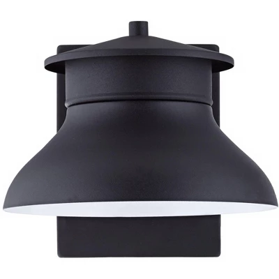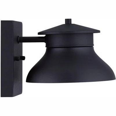 Inspired by modern industrial and barn light designs, this outdoor wall light comes in a durable steel frame, painted black for a classic look. It features a wide shade that directs light downward, making this a Dark Sky-friendly design. The built-in LED light source within offers long-saving, energy-saving technology for a modern world. Dark sky regulations vary by region, so please check with your local municipality for requirements.