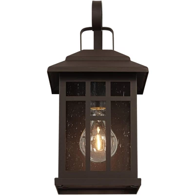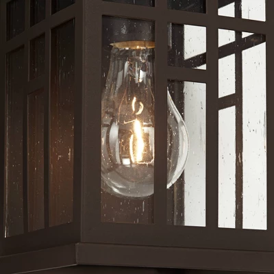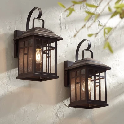 Get the best for your home with this set of two outdoor wall lights from John Timberland. Each light fixture comes in a handsome carriage style, with a bronze finish frame and clear glass panels. In a convenient two-piece set, they can provide a balancing effect for a porch, patio, garden wall, and more.
