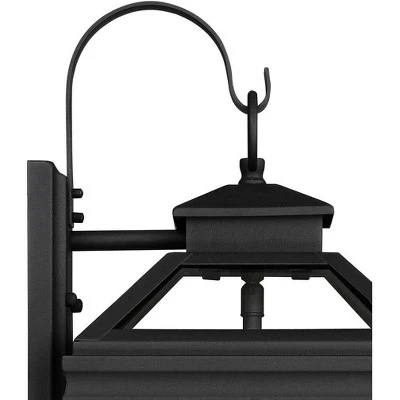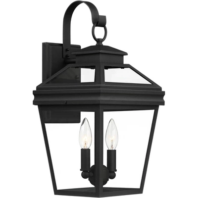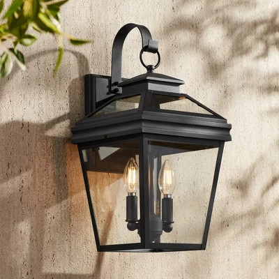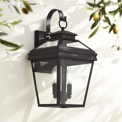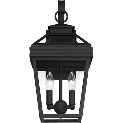 Brighten up a dark patio or garage space with this two-light outdoor wall light. It comes in a textured black finish over a steel frame, with clear glass panels that give a full view of the bulbs inside. Modeled after traditional lantern styles, this outdoor lighting fixture is sure to add elegance to your home.