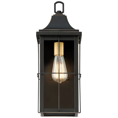 The Sunderland outdoor wall light from John Timberland offers a handsome traditional look for your home. The rectangular steel frame is covered in a classic black finish with subtle gold finish accenting for an elegant expression. Clear glass panels give a full look of the light bulb used within, making decorative bulbs a great choice for this fixture.