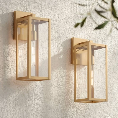 - Soft gold finish. Clear glass panels allow bulb to be seen. Vertical installation with bulb pointing down only. Wet location rated for outdoor use.