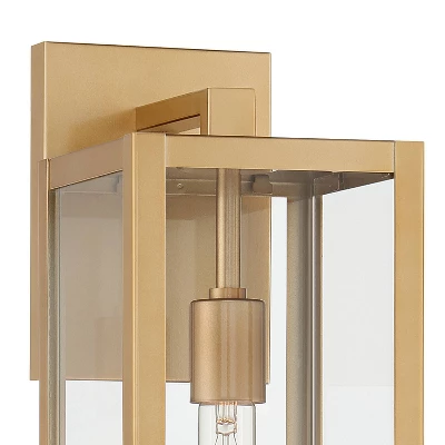Like the classic tales of Greek mythology, the Titan collection of lighting fixtures is here to make a statement, albeit with a modern twist. Clean lines are embraced by the soft gold finish on this outdoor wall light, while clear glass panels showcase the fixture’s singular bulb. Contemporary design aesthetics create a definitive angular profile, creating a brilliant addition to your outdoor areas.