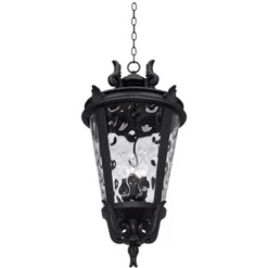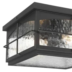 John Timberland Braylon 12″ Wide Black And Hammered Glass Outdoor Ceiling Light
