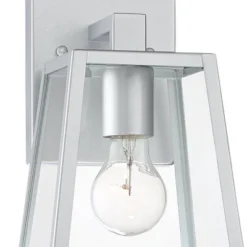 John Timberland Arrington Modern Outdoor Wall Light Fixtures Set Of 2 Silver Metal 13″ Clear Glass For Post Exterior Barn Deck House Porch Yard Posts