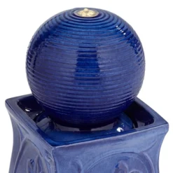 Periwinkle 29 1/4″ High Large Zen Outdoor Decor Blue Ceramic Floor Fountain With Light LED Standing Outside Garden Patio Yard