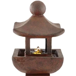 Pagoda 31″ High Large Zen Japanese Indoor Outdoor Decor Rust Stone Floor Fountain With Light LED Waterfall Outside Garden Patio Yard