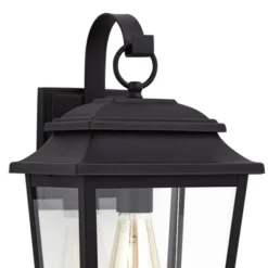 John Timberland Braylon 12″ Wide Black And Hammered Glass Outdoor Ceiling Light