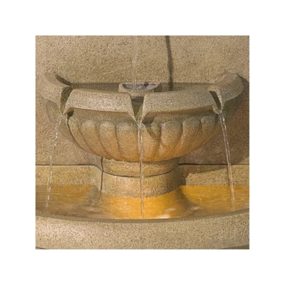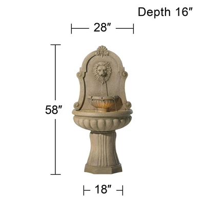 Create a calming environment with this two-tiered floor fountain that features a lion’s head and other traditional details. Water cascades gently from the lion’s mouth into an urn and then into the lower basin to create a pleasant look and sound. The looks of the fountain are enhanced at night with the halogen-lit lower basin. This fountain is crafted from lightweight cast polyresin, so you can easily place this fountain inside or out.