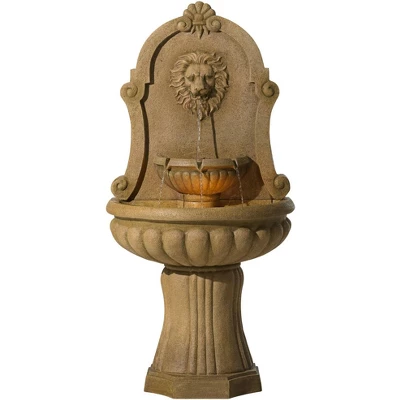 - Lion’s head floor fountain by John Timberland. Plug-in fountain design for outdoor patios, porches, or garden areas. Can also be used indoors.