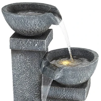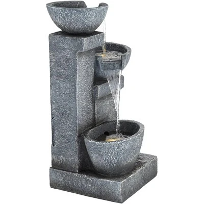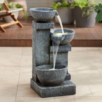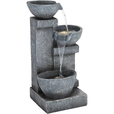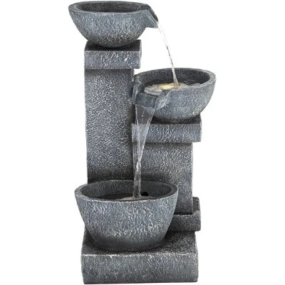 The calm sound of cascading water enhances the natural design of this LED three-tier floor fountain. A gray finish flatters the natural faux stone appearance, made to look like the fountain’s been carved from solid rock, with four charming bowls that initiate a continuous flow of water. This fountain by John Timberland® reinforces a nature-influenced feel and offers energy-efficient LED lighting for mood enhancement.